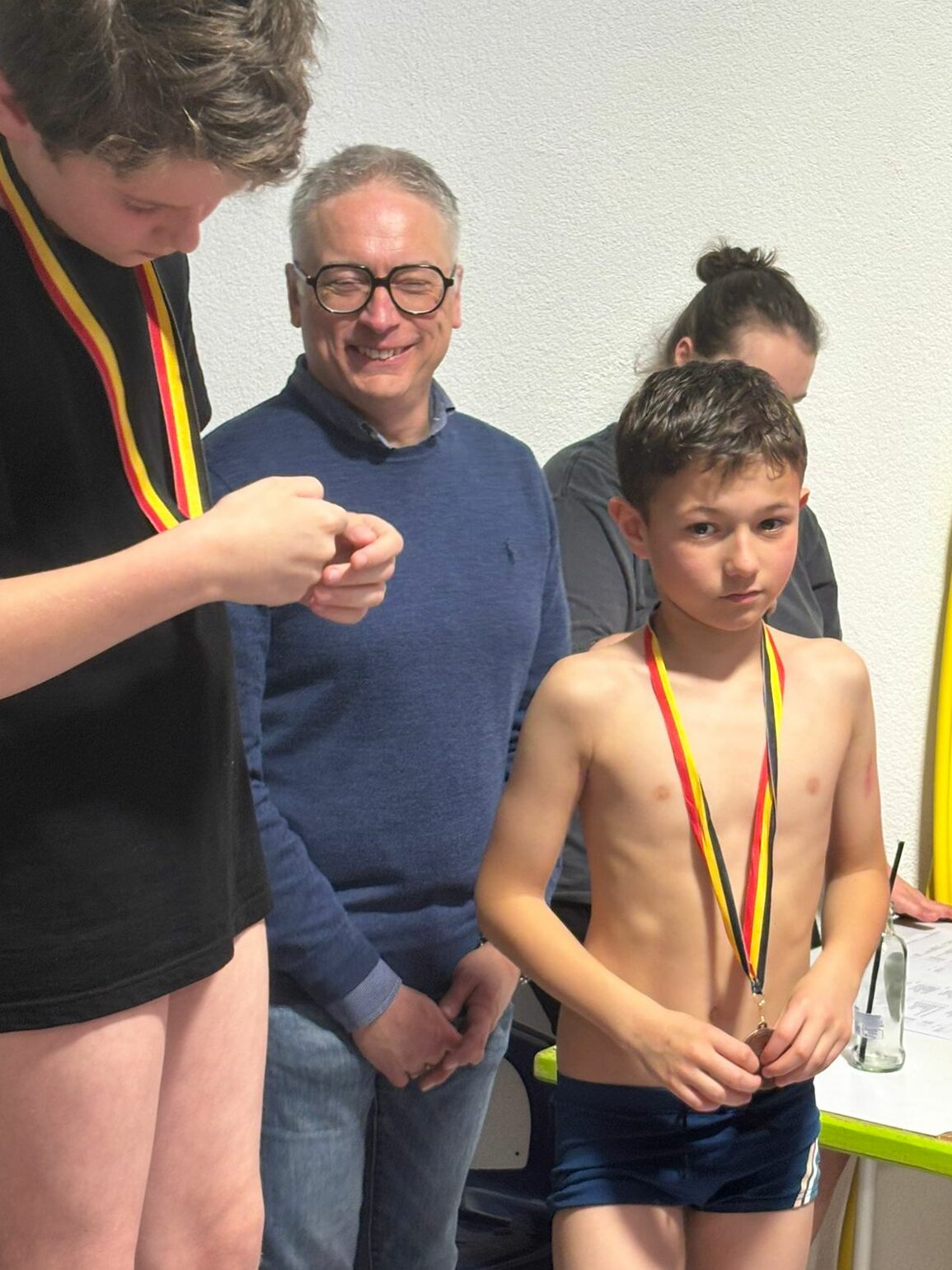 « Niene Poncelet, c’est le même caractère qu’Elad. Elle est super combative. Elle devait partir au ski avec l’école mais elle s’est finalement ravisée. Elle a bien fait. Noéline progresse dans toutes ses courses, c’est vraiment nickel. Et il ne faut pas oublier Benjamin Schroyen qui s’adjuge deux médailles en papillon. Il a découvert son style ! Je citerai encore Lorane Stas, qui a sorti un super 200m crawl ou encore Pauline Van Hove. Elle s’en est sortie comme une cheffe alors qu’elle avait été grippée et même hospitalisée. Elle est restée 10 jours hors de l’eau à un moment-clé. Elle a été super courageuse. Finn Jorissen, qui avait été malade aussi, s’est bien débrouillé également, avec notamment quelques 4e place. Il ne lui manquait pas grand-chose… »