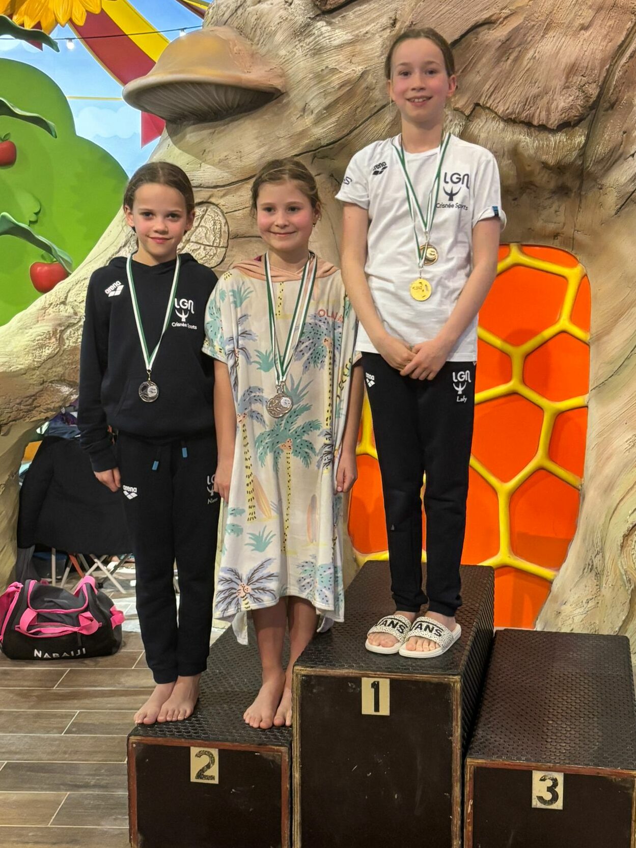 Elle a aussi assisté à une belle bagarre entre Niene Jorissen, Ella Dupont et Laly Thyse. « Sur leurs 3 premiers 100m (crawl, dos, brasse), chacune d’elle avait remporté l’or. Le 100m 4 nages a finalement consacré Laly comme lauréate de ce duel à 3. C’était une belle émulation. Elles sont super copines en plus. »