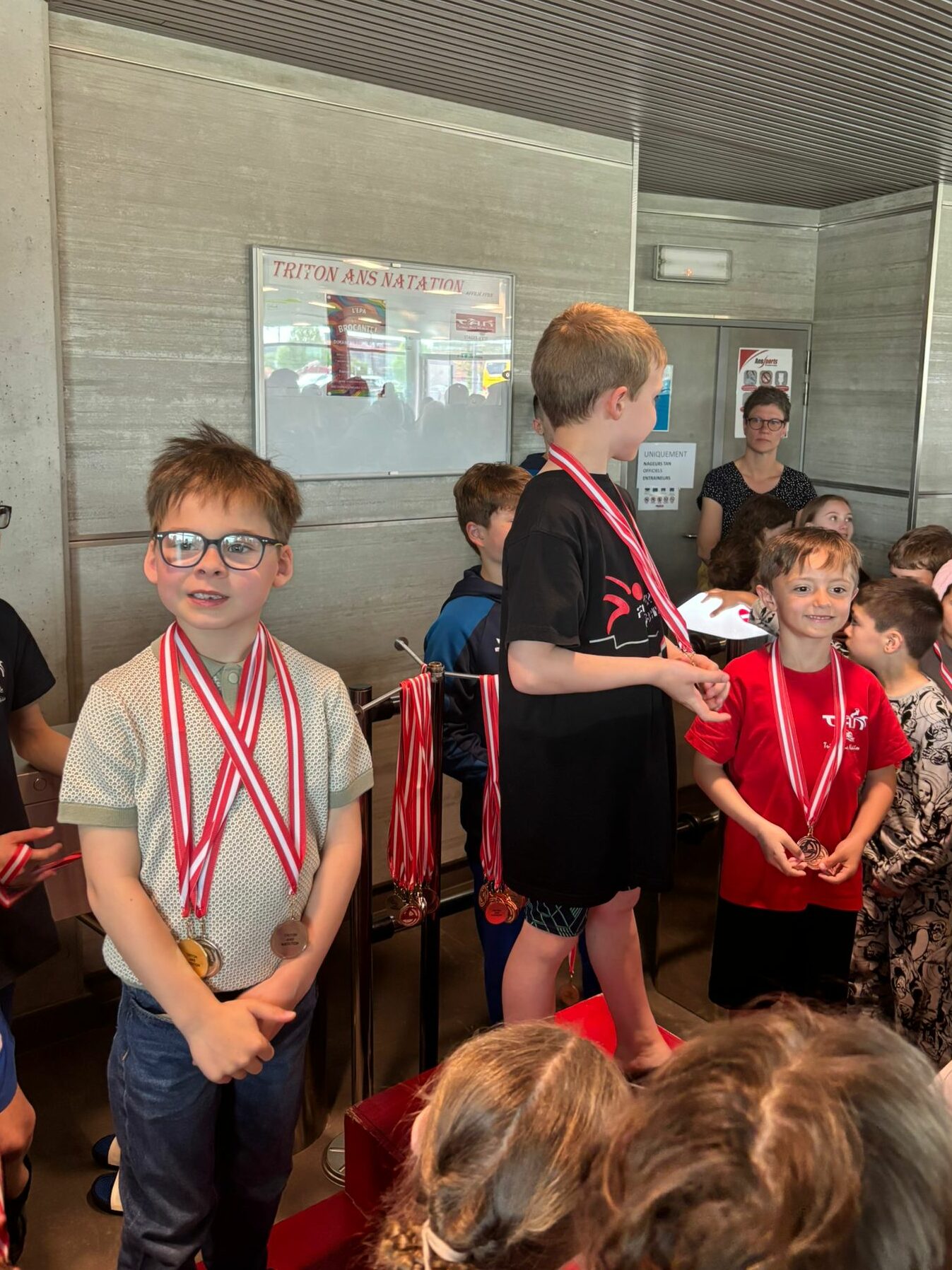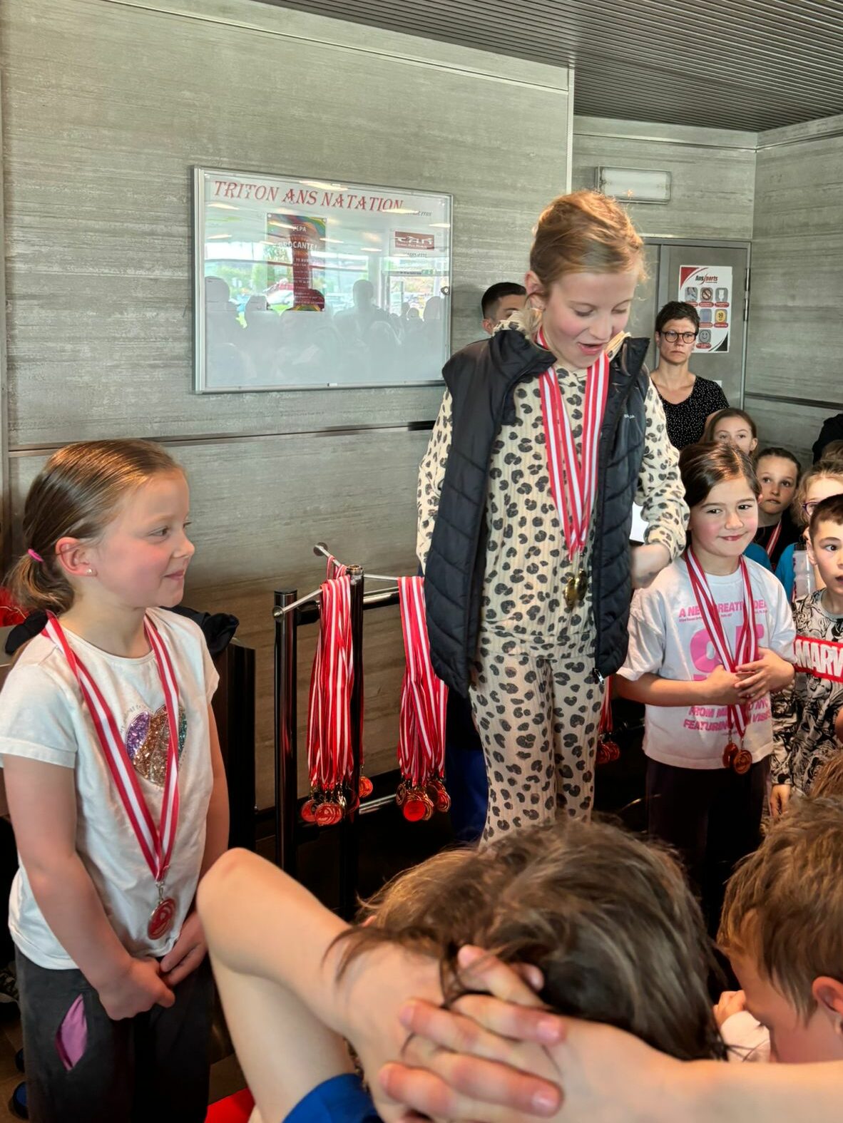 Si le meeting s’achevait samedi soir, notre piscine vibrait encore dimanche après-midi à l’occasion du Challenge des non-licenciés. « Tout s’est bien passé », poursuivait Sylvie, à nouveau sur le pont ce dimanche avec les plus jeunes (33 au total) et qui n’a pas ménagé ses efforts. « C’est vrai qu’il faut regarder ceux qui nagent, vérifier que ce sont les bons qui se présentent à la chambre d’appel et les trouver au moment des podiums car ils sont repartis près de leurs parents au lieu de rester groupés (rires). Il y avait du monde pour encourager les enfants et je pense qu’on a gagné plus de médailles que lors des précédentes éditions. »